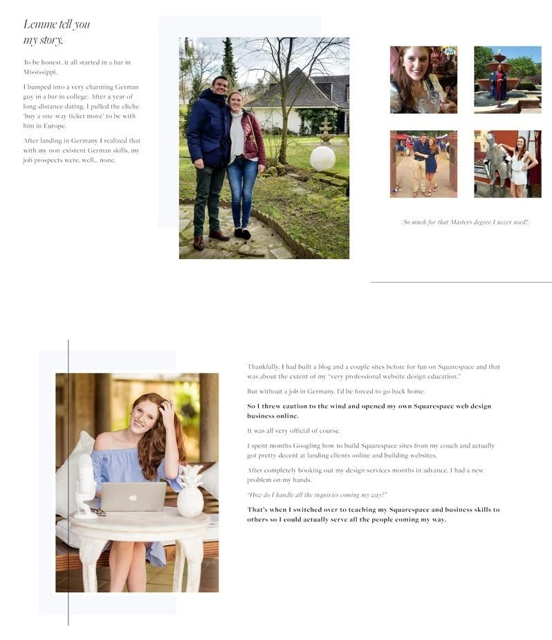 Another great way to position your back story is if you lived something and then created a product or service to help someone overcome the same problem, this is like the example above from Paige Brunton who learnt how to do something and now sells courses helping others do the same (in this context telling her story in a more in depth way is really useful.