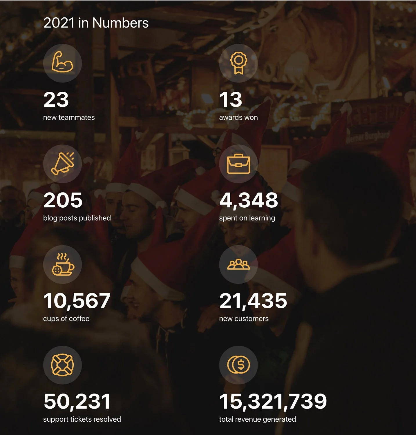 I love counters - for example the number of sales, or your ranking in a survey/ award or star-reviews, these can be embedded in an easily skimmable way and have a fun animated effect that brings a bit of life to your about us page