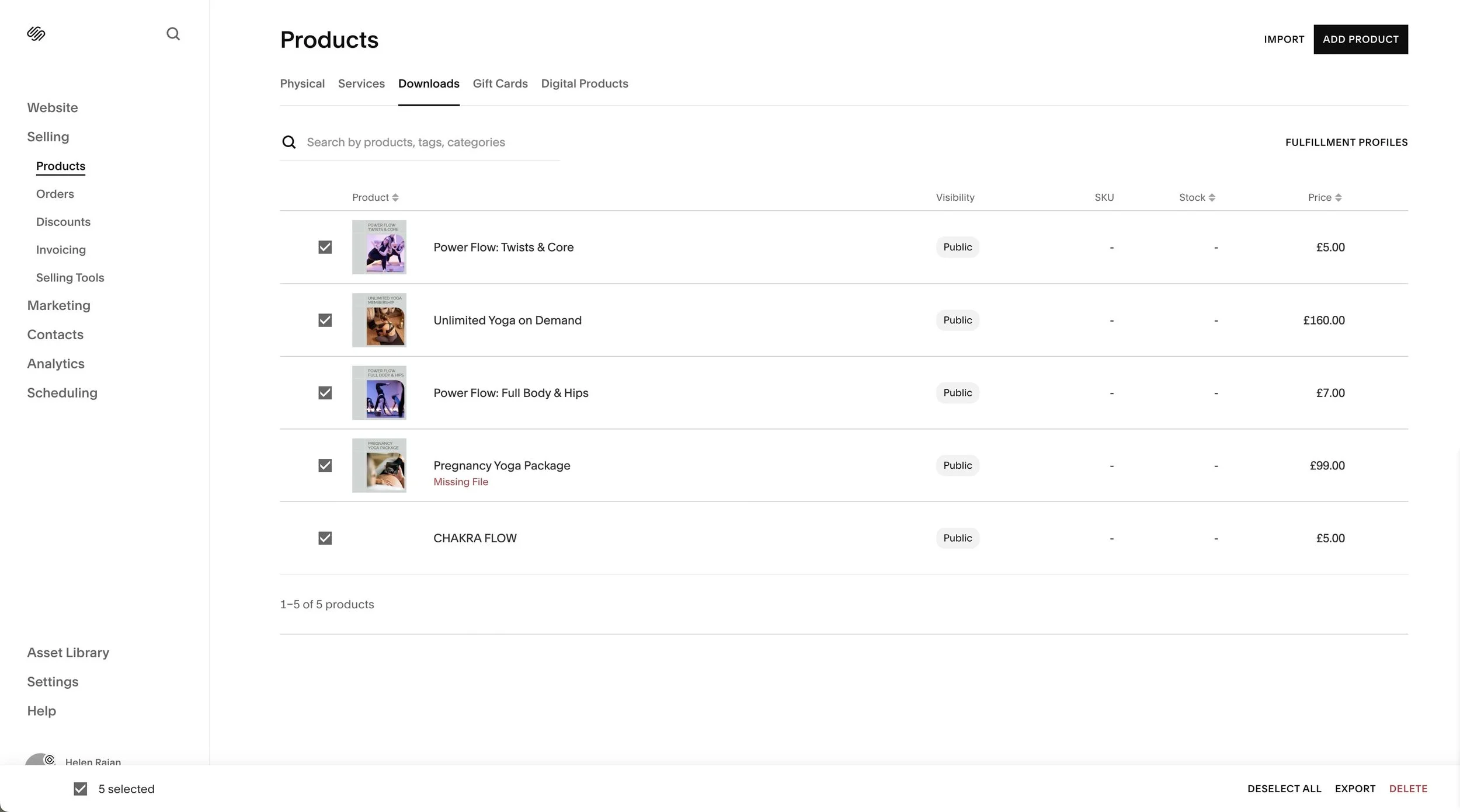 How to export your products to a .csv file on Squarespace