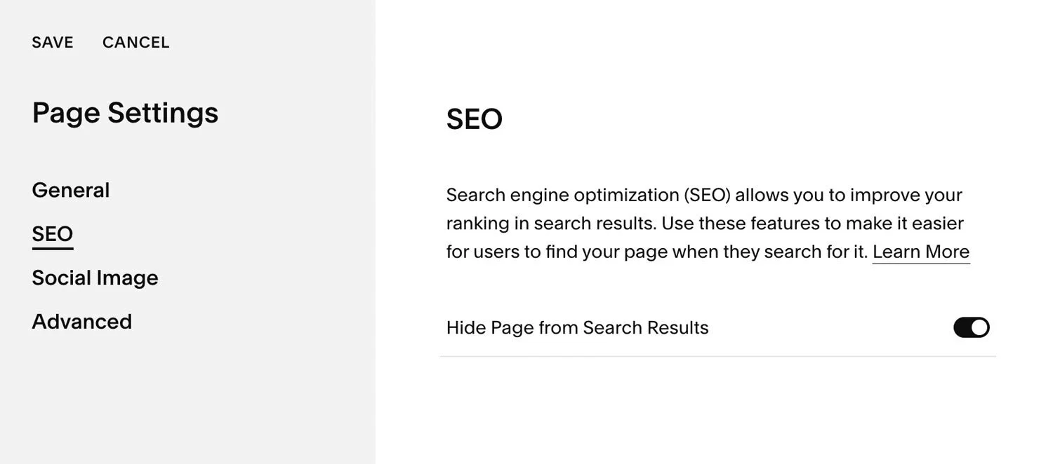 You may wish to hide your linktree page from search results, as it could look a little out of context should it come up in a google search. If you’d like to do this remain on settings and click on “SEO”. It’s here that we want to select “Hide Page from Search Results”. Once this is toggled on, we know that our linktree page will not show up in a google search.