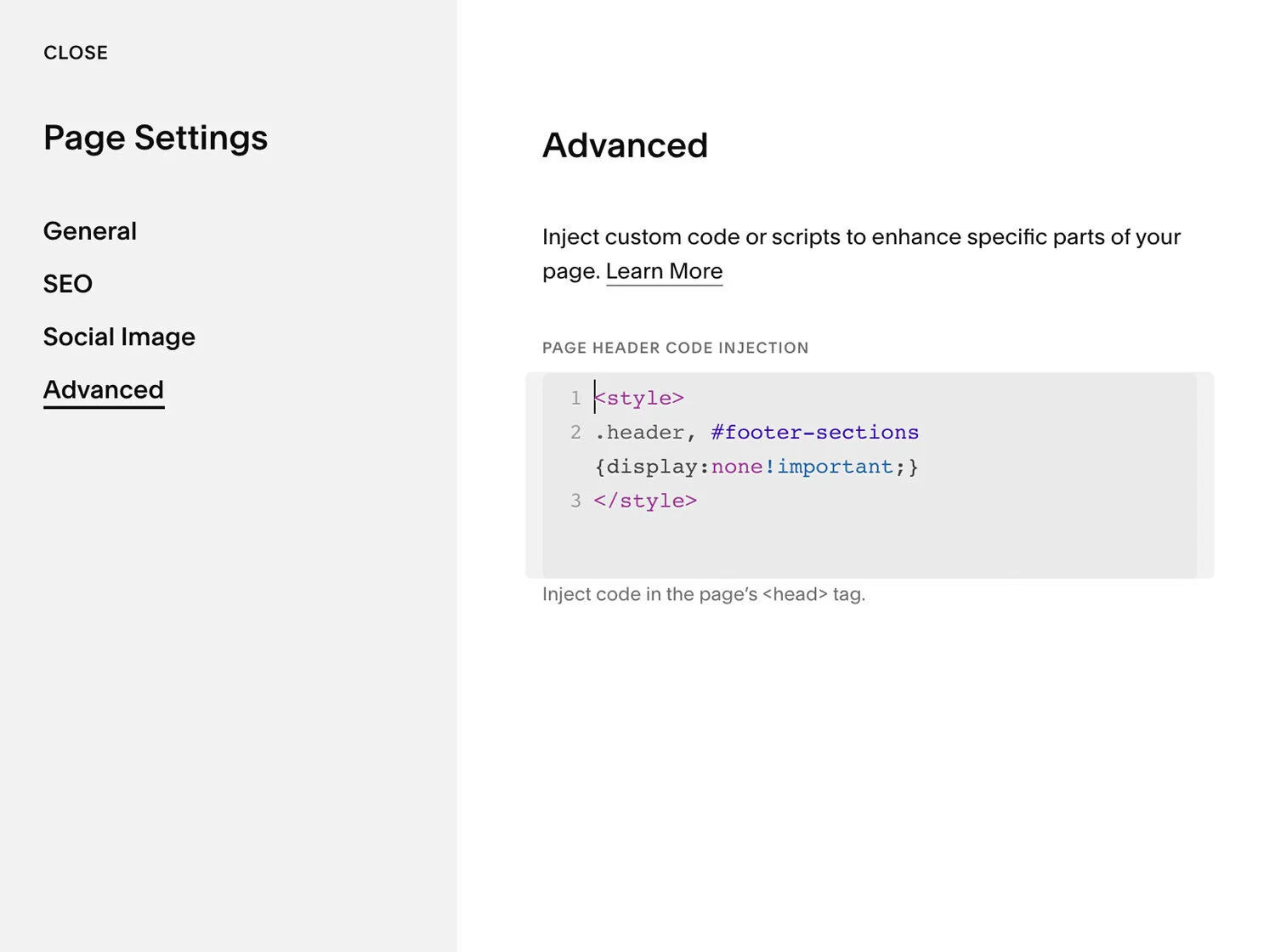 The tag before (<style>) and after (<style/>) our CSS snippet in page code injections (the ones you add to the advanced settings of a page) tells Squarespace that what’s in between these tags is CSS “language”.