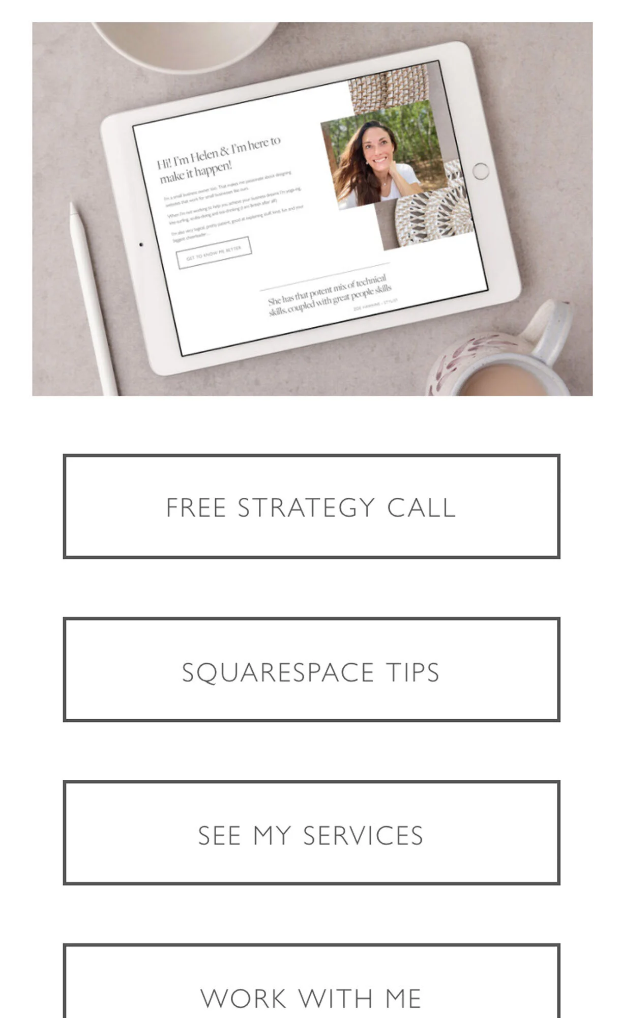 If you don’t have a website on Squarespace already I don’t recommend making a linktree in Squarespace - you can make one on your existing platform or use the linktree functionality available on many social media planning aps (Having said that if you don’t already have a website built on Squarespace maybe you should - get in touch and we can chat!)
