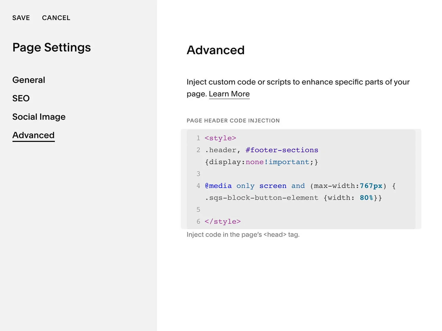 The reason we have to do this here is that we can actually add different code languages like javascript or html to this code injection in advanced page settings.