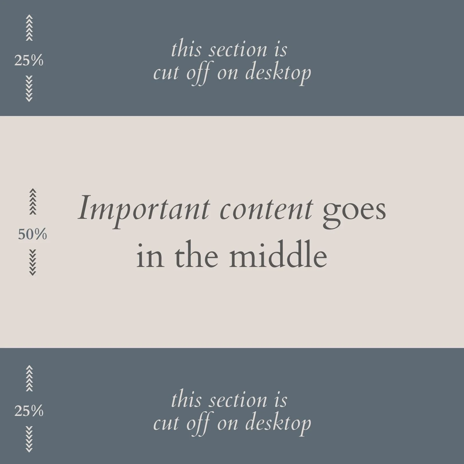 One thing to be aware of is that Facebook (the main place your social sharing image will be shown) shows 2 versions of it - one with a rectangular dimension for desktop, and a square version for mobile. This means we have to be mindful to create a social sharing image that looks great when cropped to these 2 different dimensions.