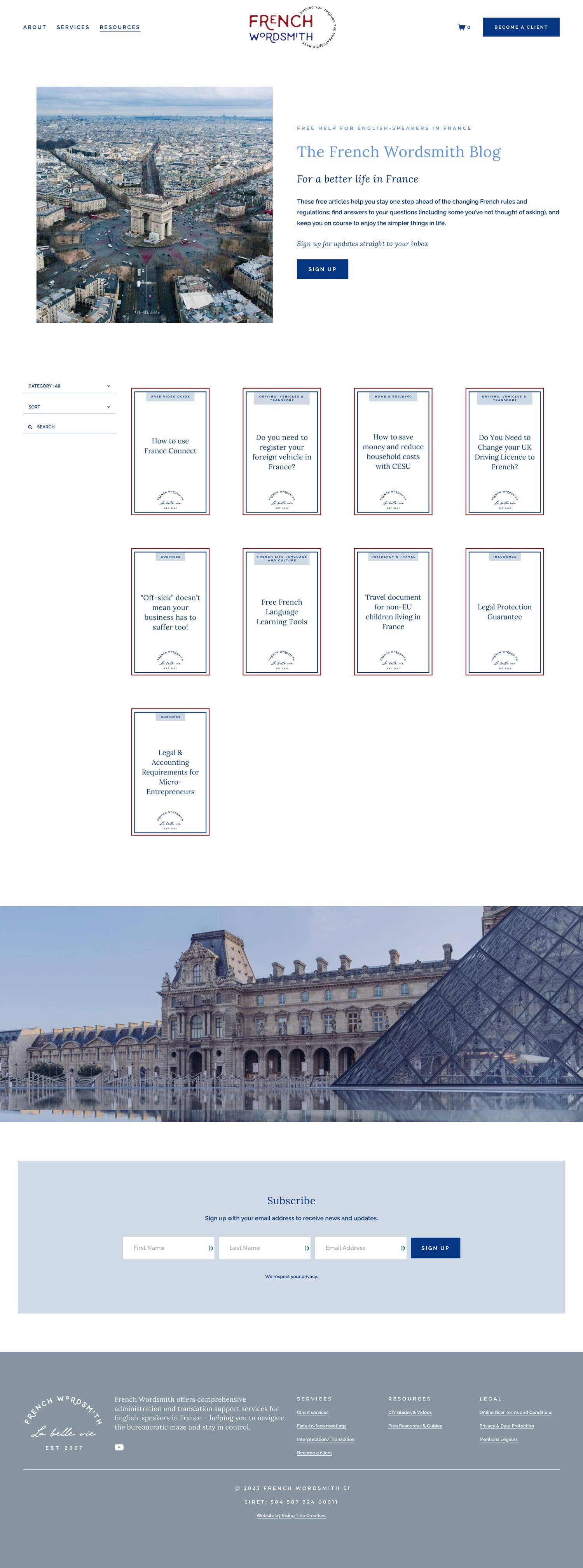 The newsletter sign up block at the bottom of the page is also super well placed & aims to help the blog build French Wordsmith’s email list - a key objective for the blog!