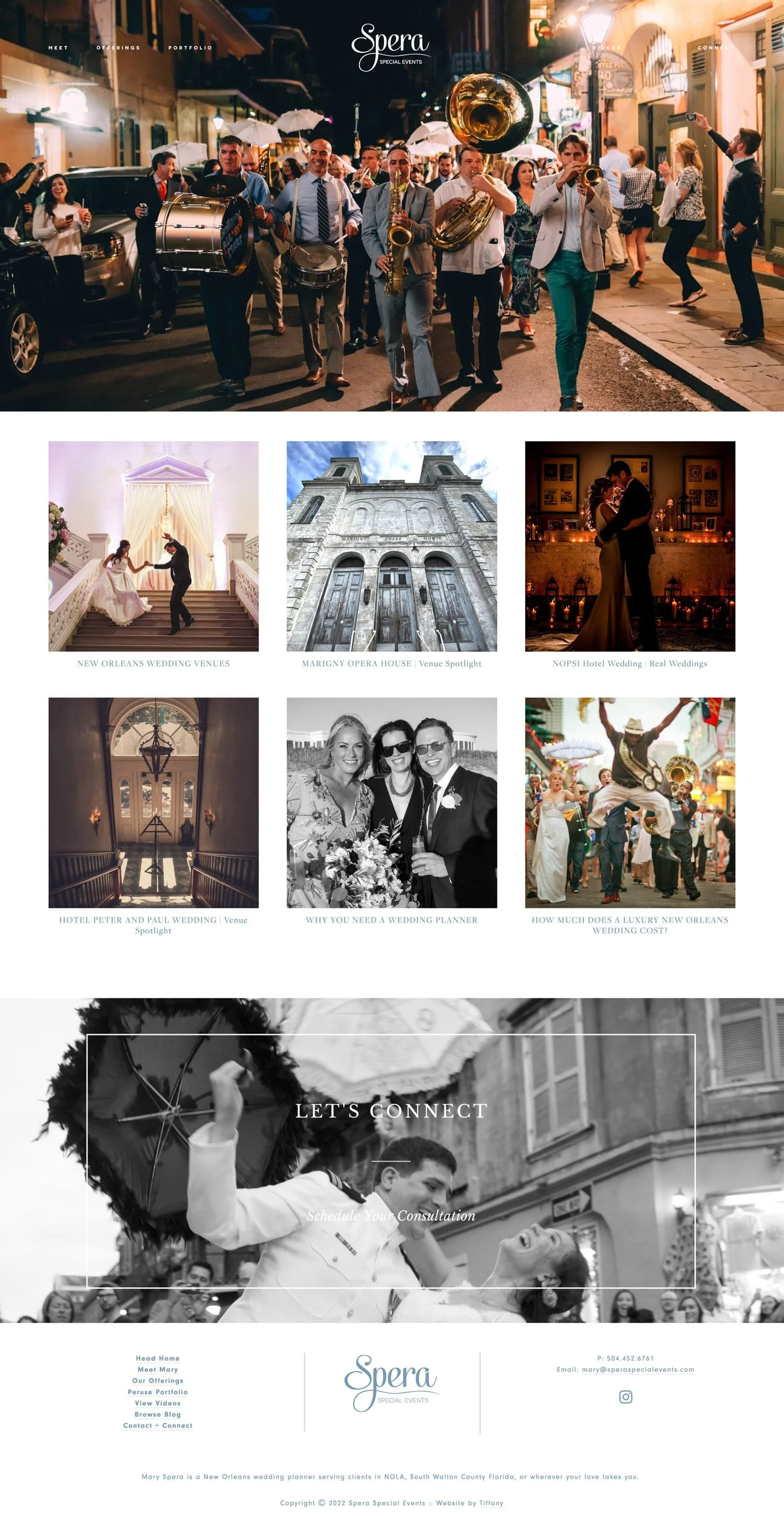 Firstly - they’ve absolutely nailed the blog topics - things like “New Orleans Wedding Venues”, “How much does a luxury New Orleans Wedding Cost”… are SEO keyword gold (just imagine that newly engaged couple searching these things on google & rocking up on this site ready to spend $$$ on a fabulous wedding planner!)
