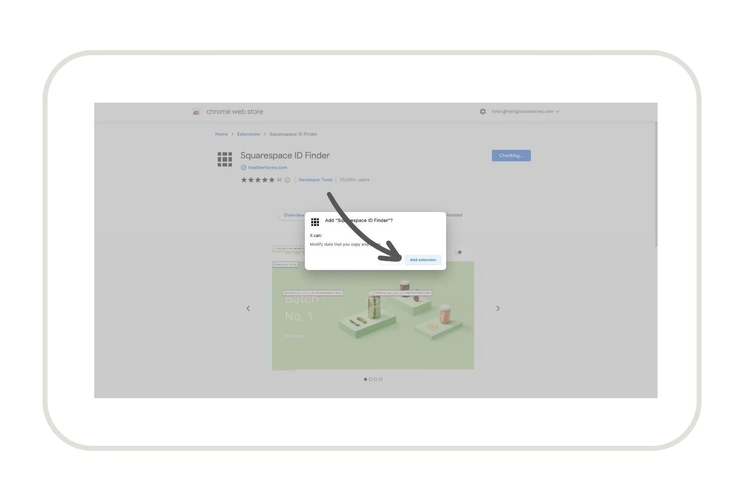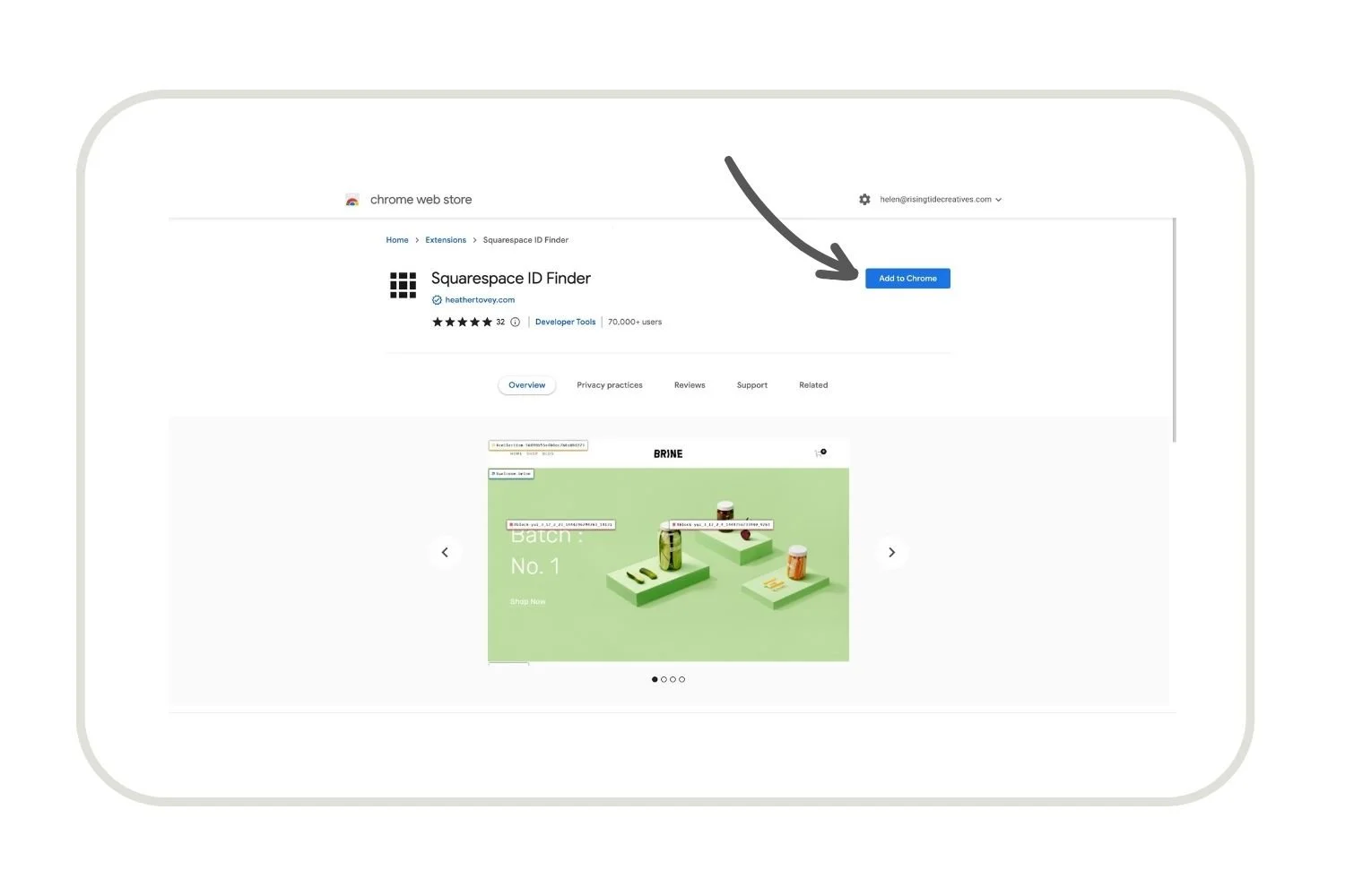 Download the chrome extension from the chrome web store (you can either head straight to the web store and search “squarespace id finder” or click this link to go to the squarespace id finder chrome extension directly).