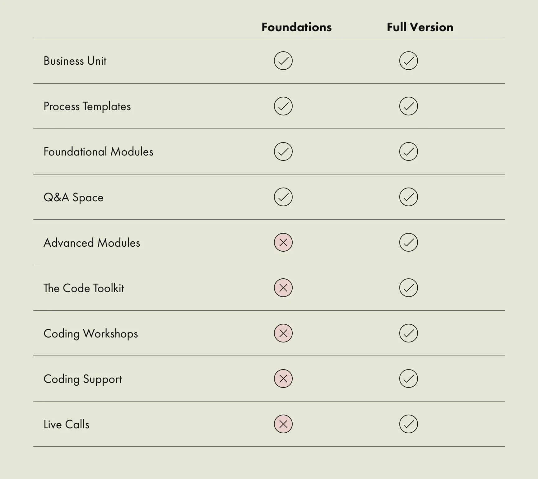 The full version will gives the confidence in coding on the platform to achieve (pretty much) whatever a gal can dream up, whilst the Foundations will gives the right "foundations” (funnily enough!) to know that they’re using the platform in the very best way, be it for themselves or for their clients.
